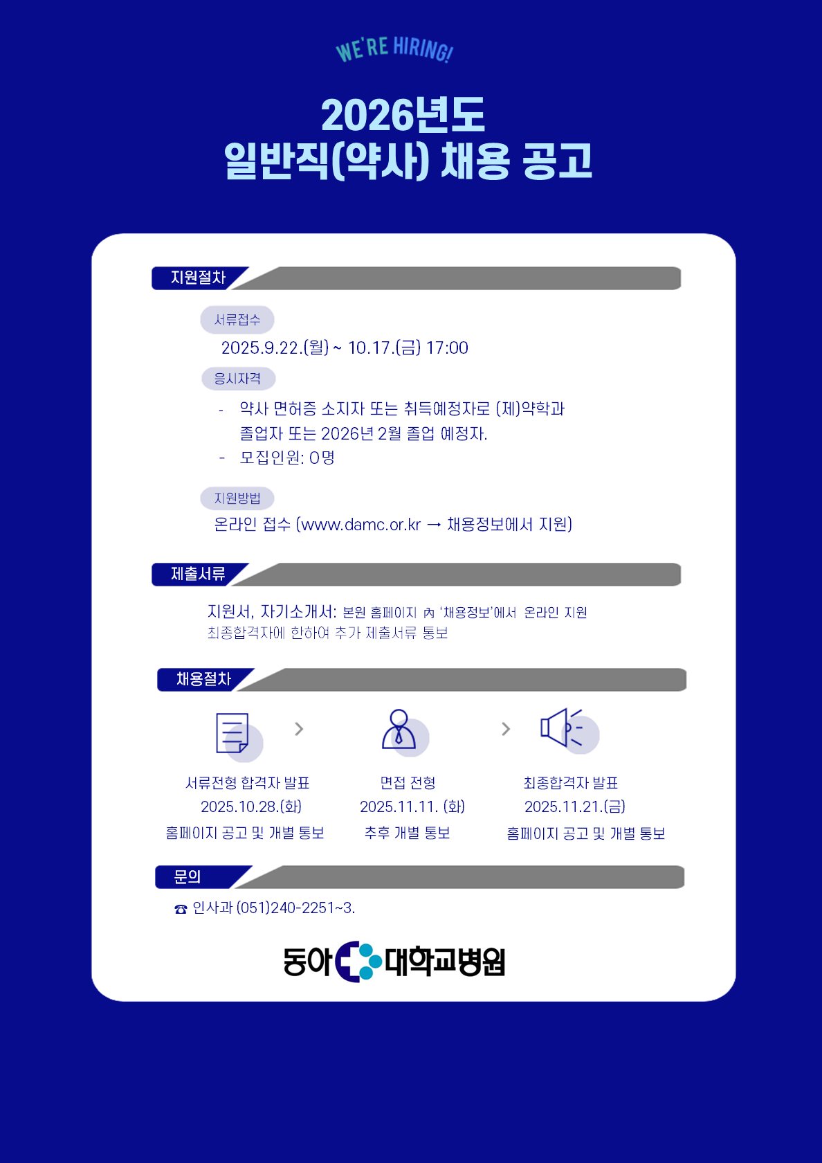 2026년도 강릉아산병원 약제팀 약사 채용공고
