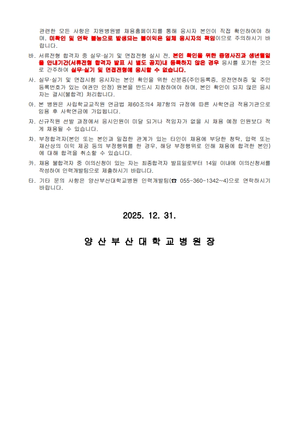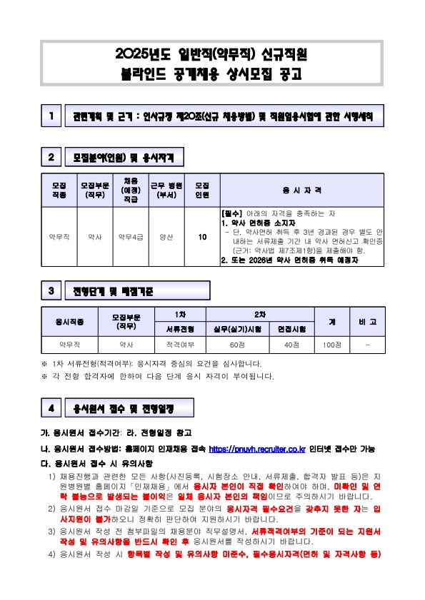 양산부산대병원 약무직 신규직원 공개채용안내